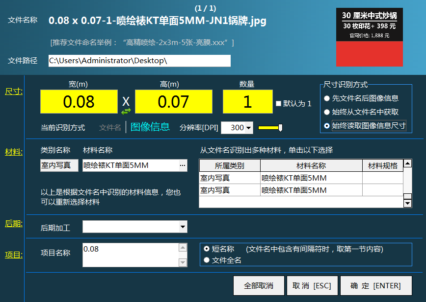 飛揚動力廣告公司管理軟件可以直接將客戶所需要開單的圖片直接拖到軟件中,就可以直接進行開單了,飛揚動力廣告公司管理軟件可以自動識別出圖片的寬、高、材料信息等,這樣,在開單的時候就會變得非常簡單,方便廣告公司快速開單實現管理。