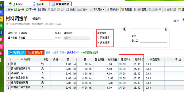 就可以在原來成本價格的后面,直接填寫上調撥的單價。方便進行出庫管理的
