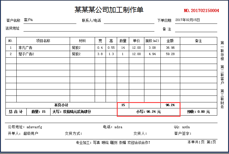 【廣告公司管理軟件單據打印】