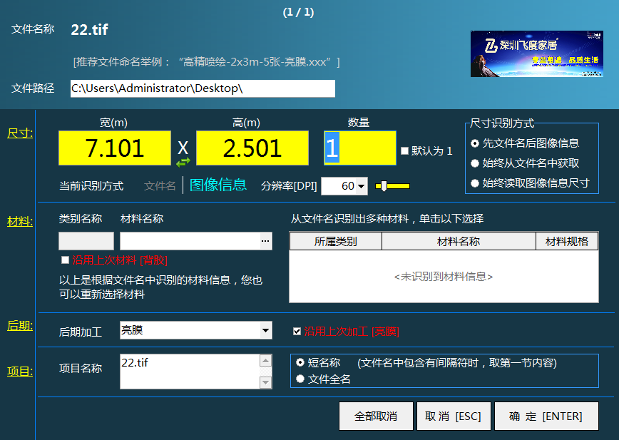 飛揚動力廣告公司管理軟件可以實現拖圖快速開單,將對應的需要開單的圖片直接拖到軟件中就可以自動識別圖片的尺寸和材料等信息,廣告公司就可以直接實現開單,在后期對賬的過程中,也可以將客戶所制作的圖片信息直接導出,方便與客戶進行對賬管理。
