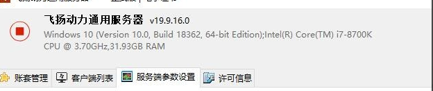2.打開飛揚動力服務器端,點擊下圖所示的服務端參數設置標簽