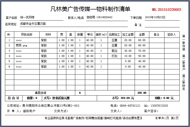 如何在噴繪管理軟件中開出用料登記單?