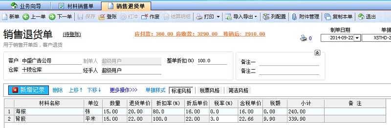 4.最后點擊保存并登賬,就完成了整個退貨單制作。