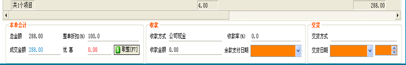 在單據下方,填寫本次收款金額,以及交貨方式和交貨日期。
