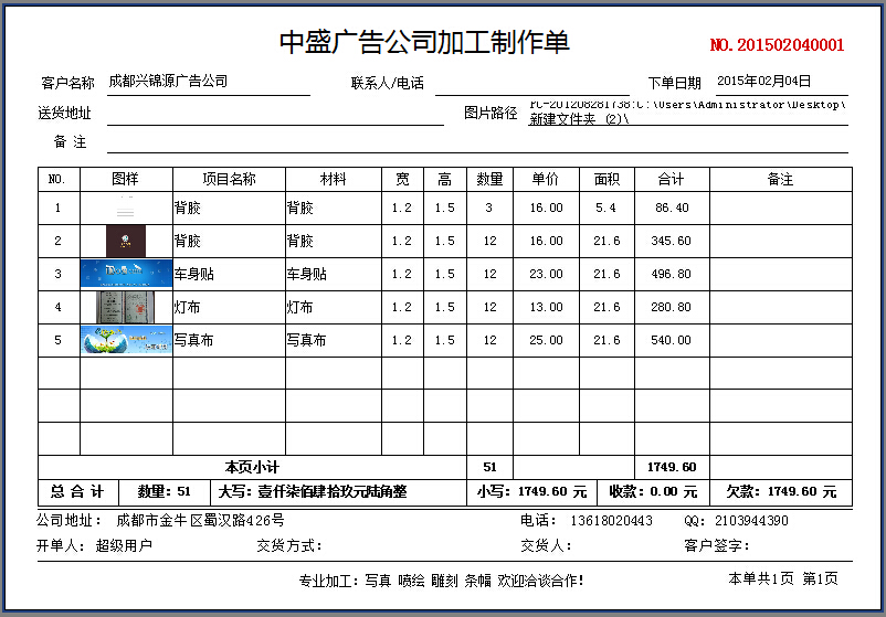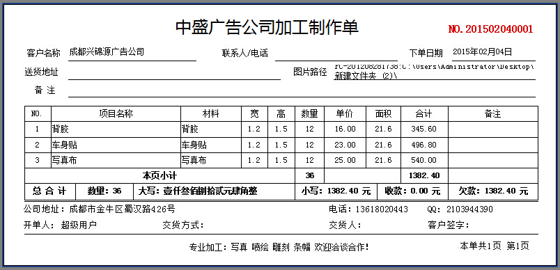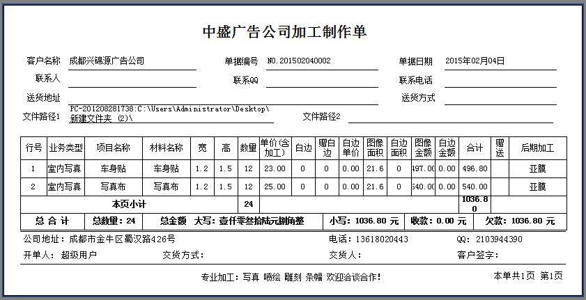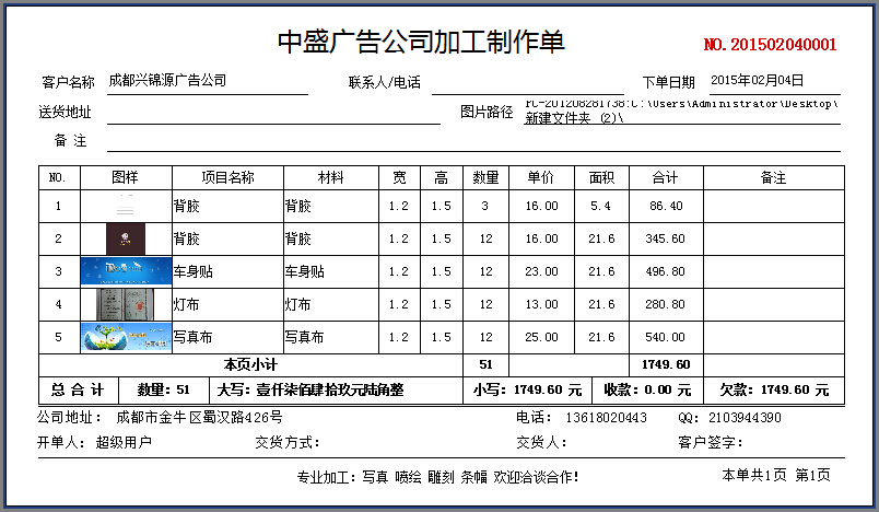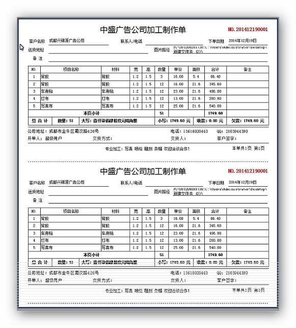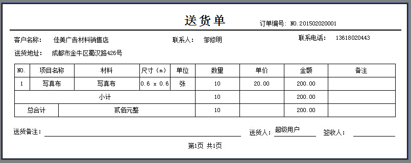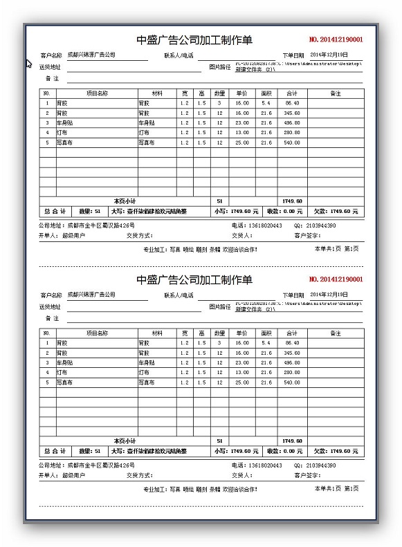 業務單——打印樣式